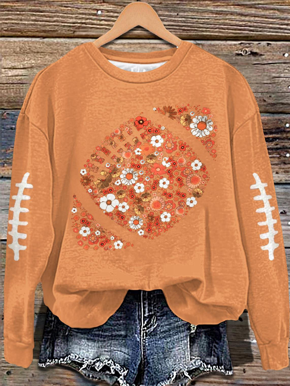 Fall Football Floral Print Long Sleeve Casual Top
