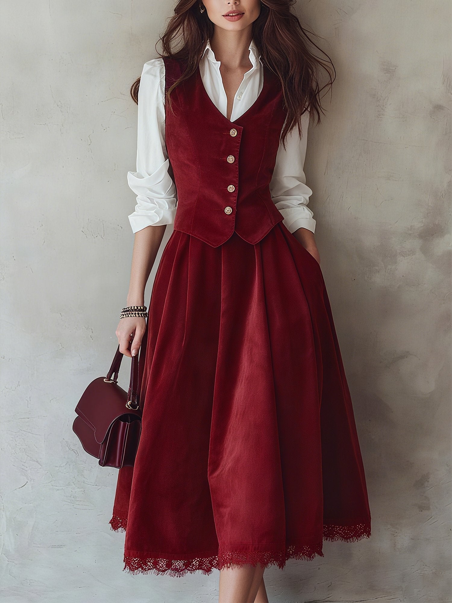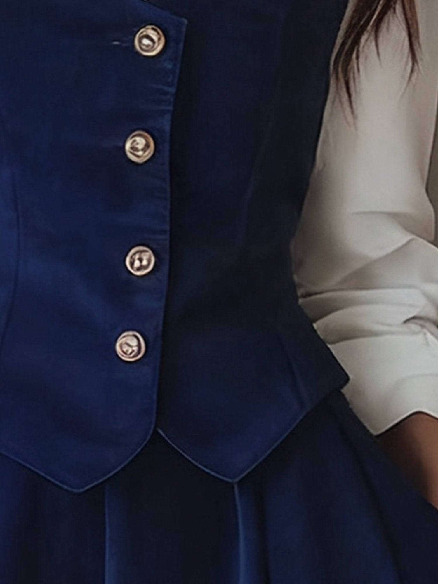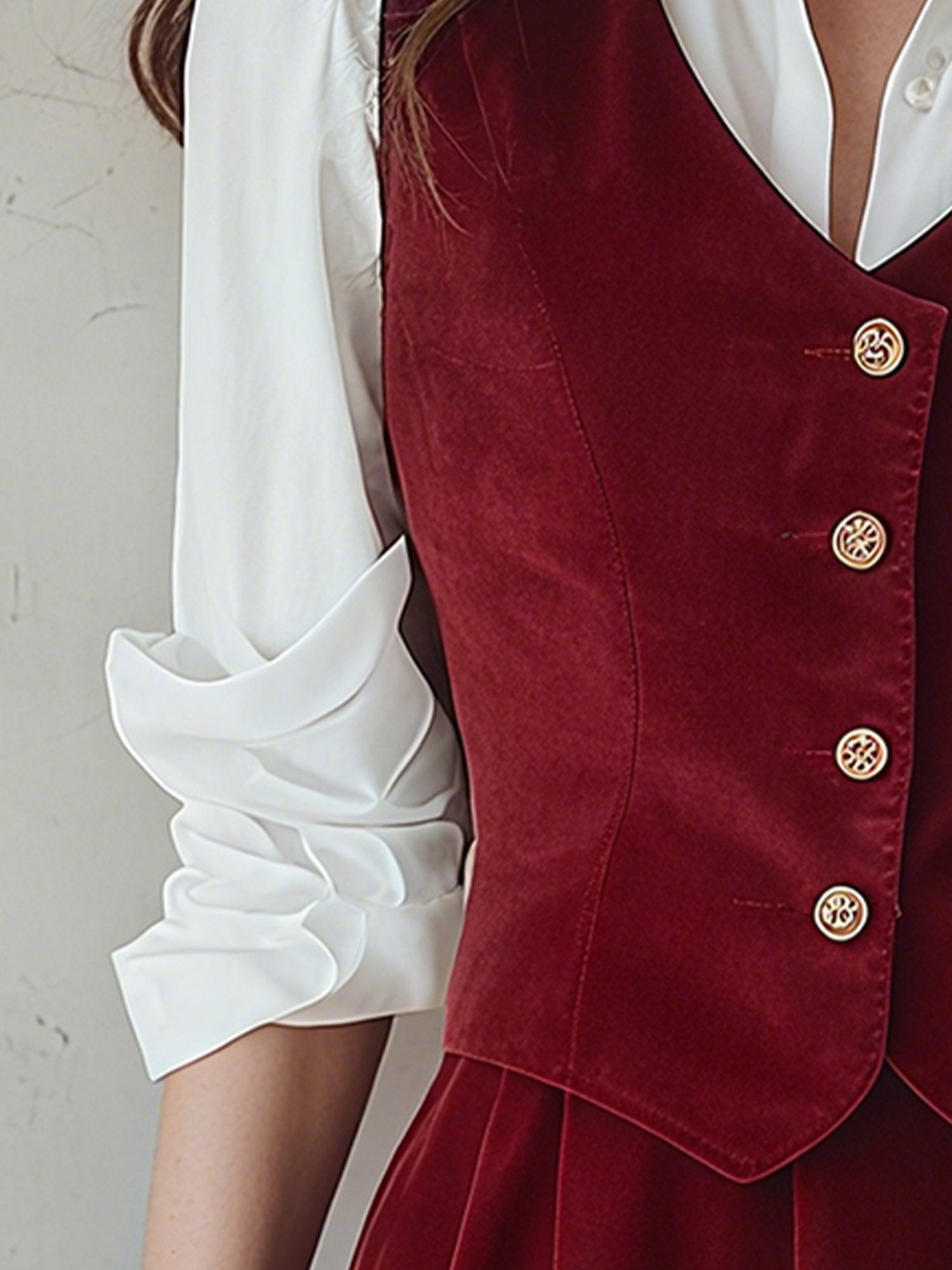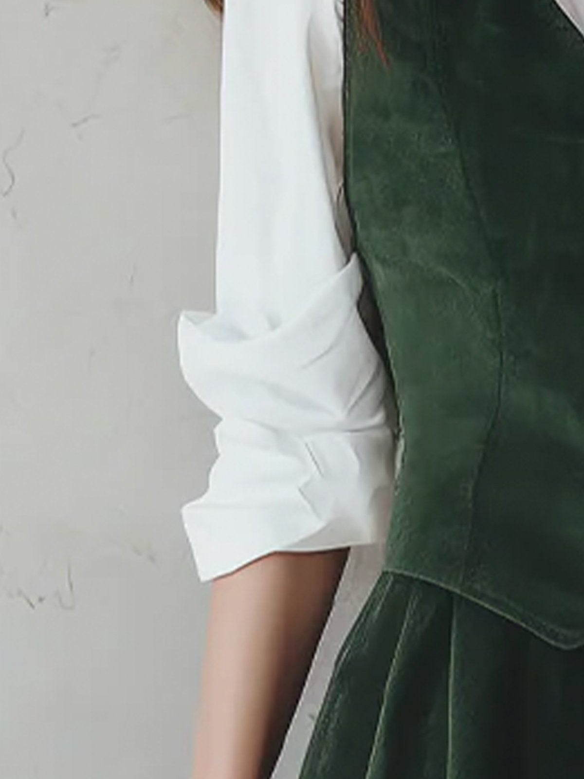 Cotton Vest, Sleeveless, V Neck, Plain, Button Design, Vintage, Green