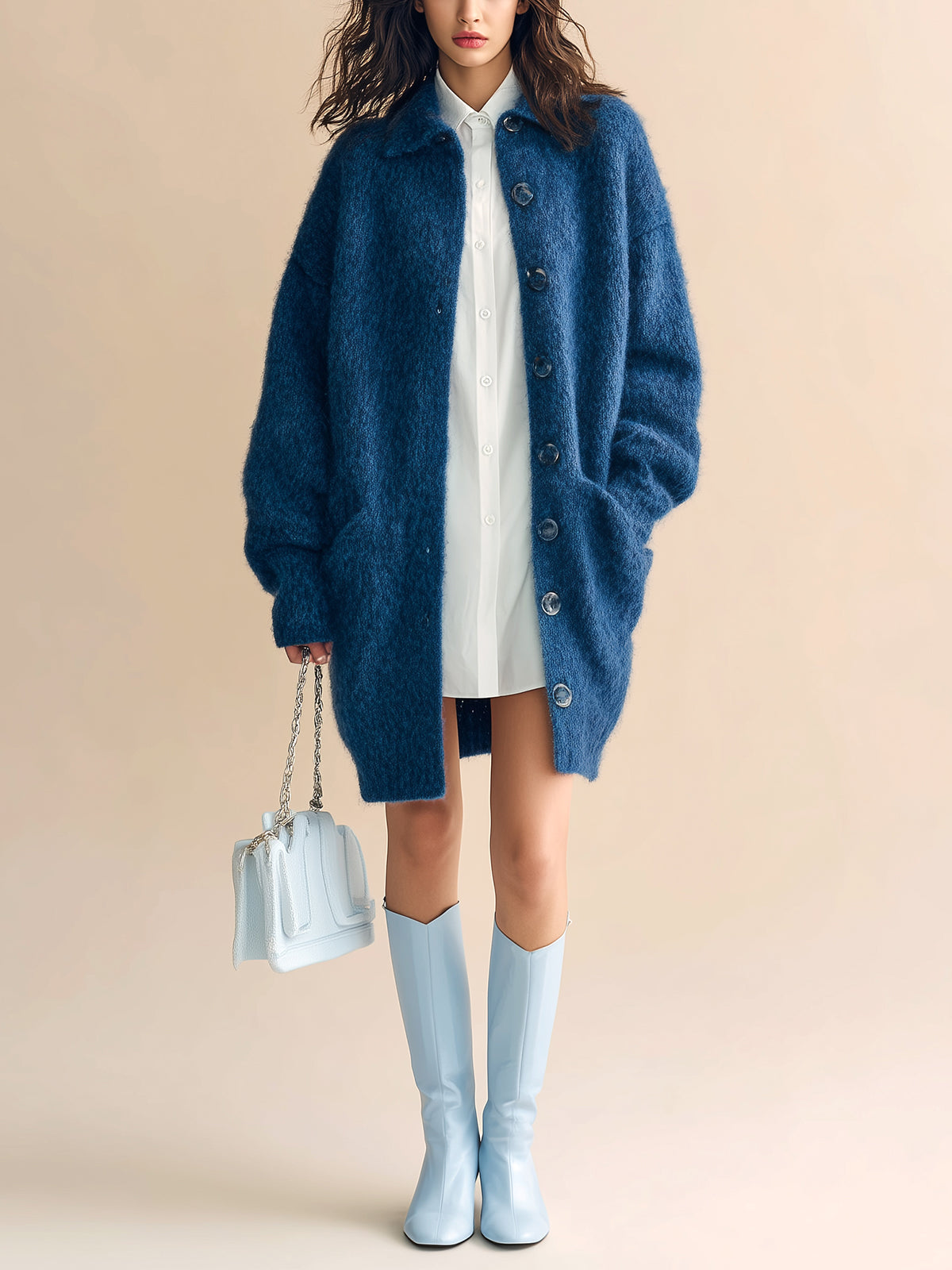 This cardigan is perfect for both casual and semi-formal occasions. Pair it with skinny jeans and boots for a chic urban look, or layer it over a dress for an elegant dinner ensemble. Its deep blue color complements a variety of palettes, making it easy to mix and match with existing wardrobe pieces.
