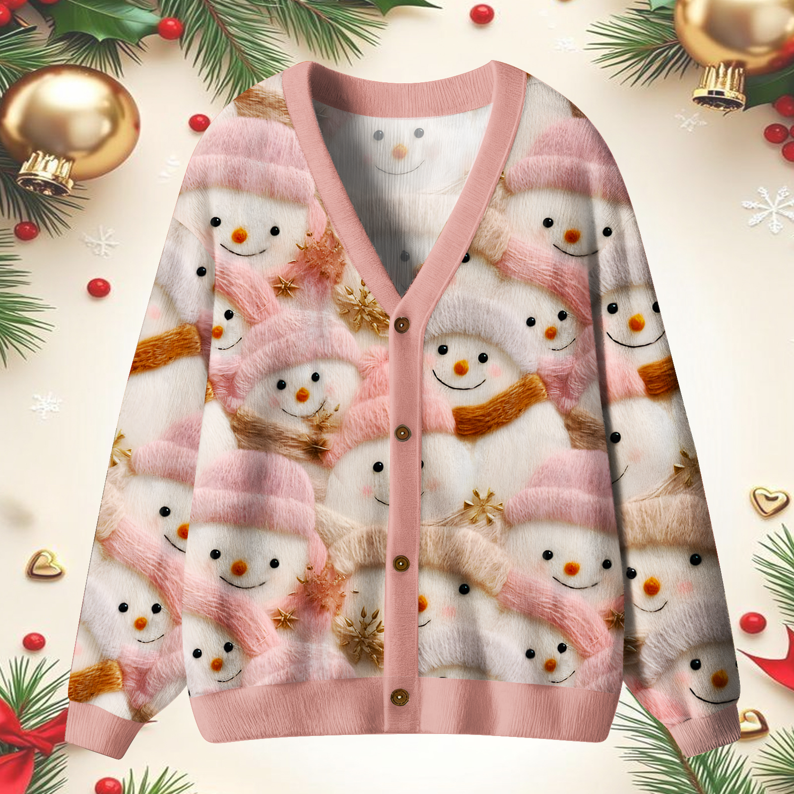 Unisex Pink Snowman Ugly Cardigan Sweaters