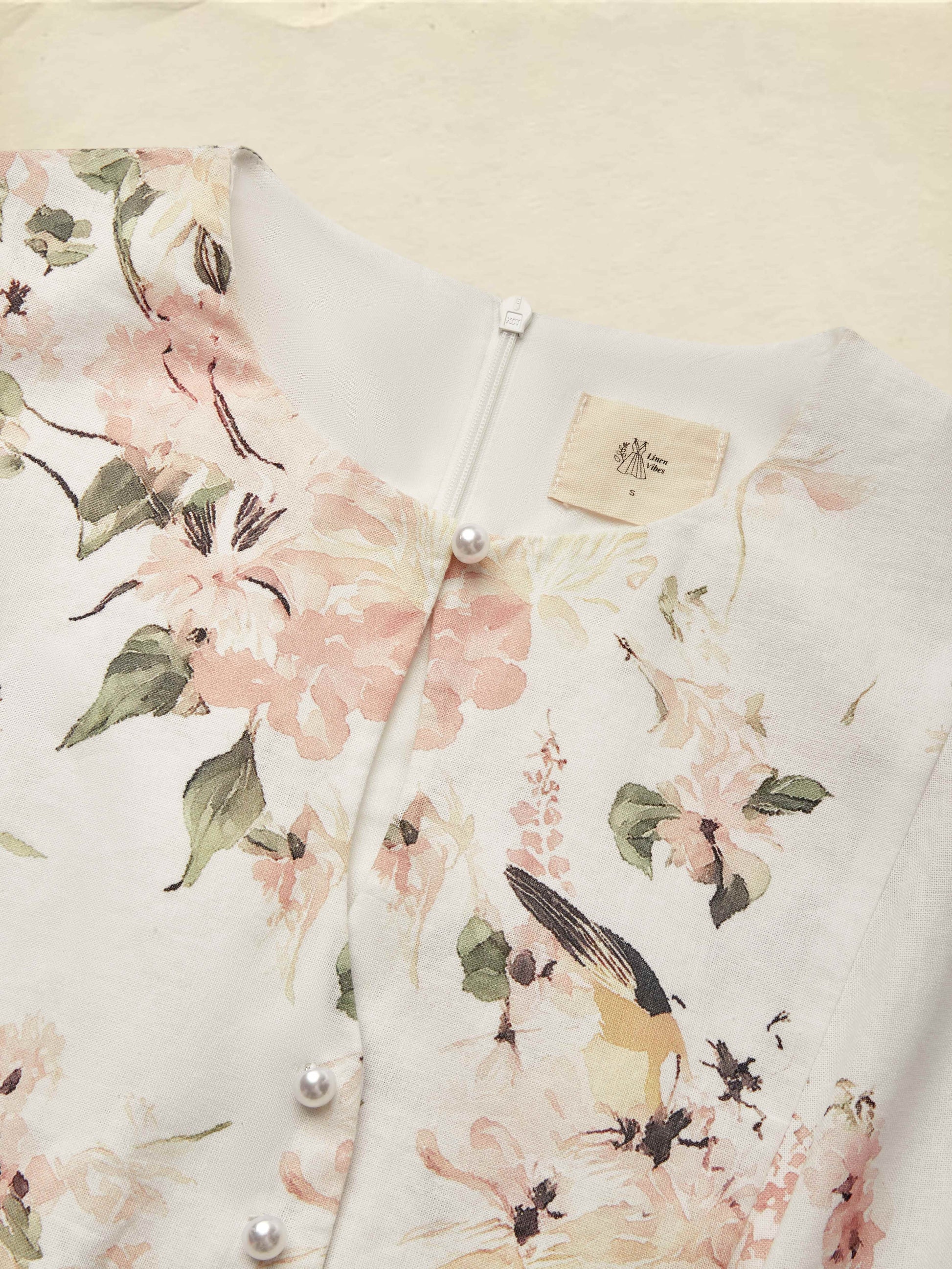 Linen Jumpsuit , Sleeveless, Round Neck, Floral, Button Design, Vacation, Vintage, White