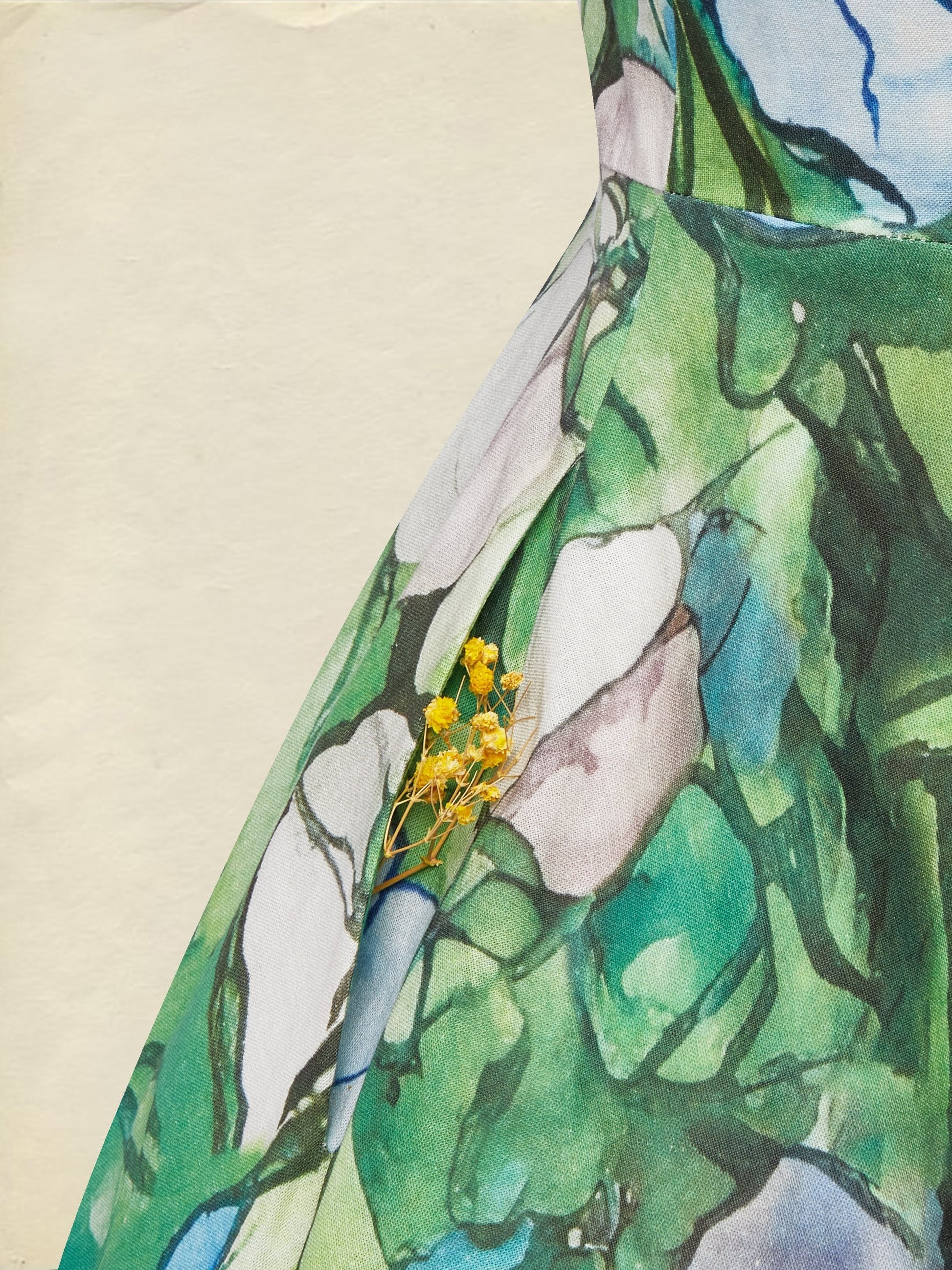Maxi Linen Dress , Sleeveless, Square Neck, Floral, Church Glass, Vacation, Vintage, Green