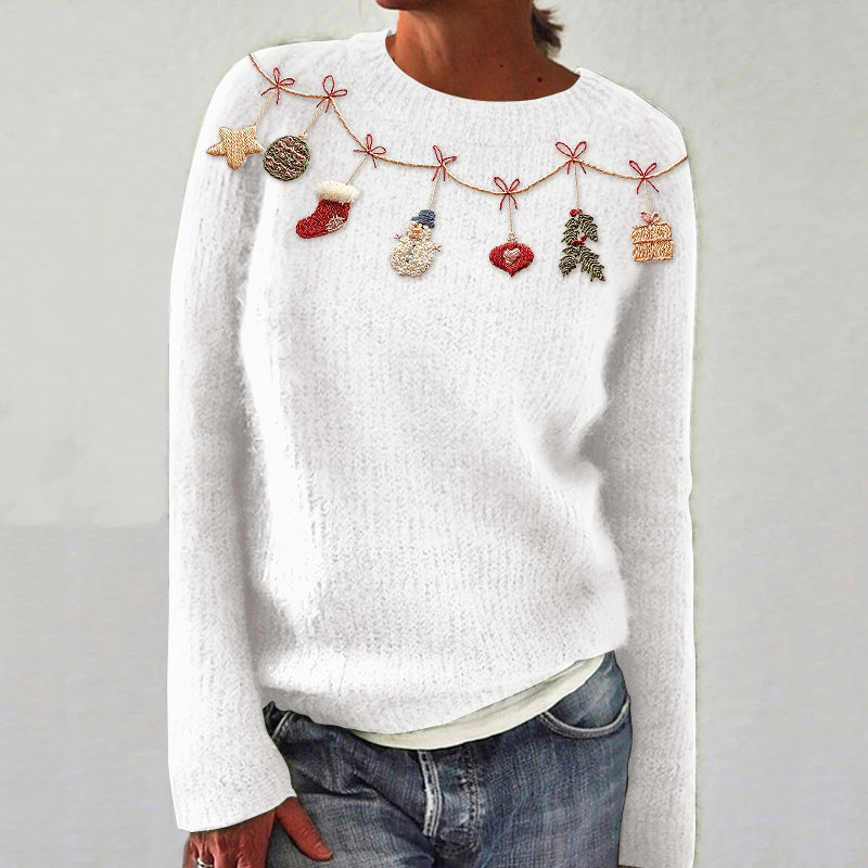 Women's Christmas Embroidery Art Crew Neck Cozy Sweater