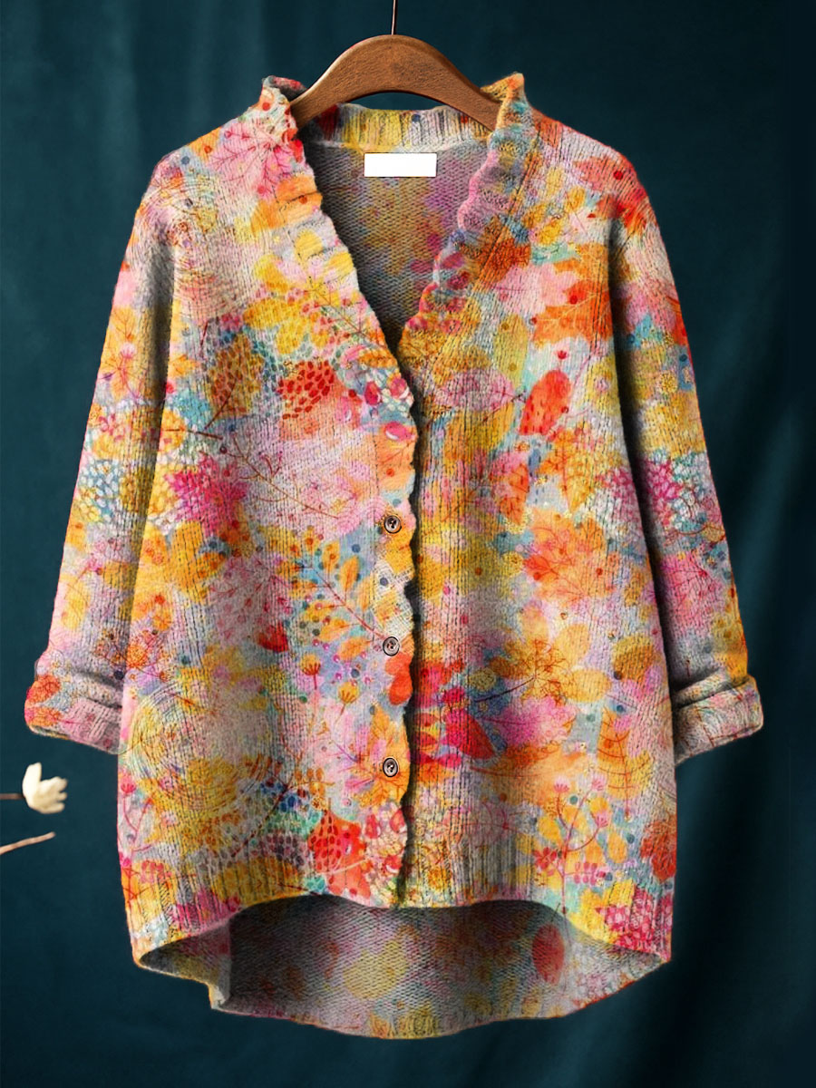 Women's Vintage Floral Art Print Casual Pullover Sweater